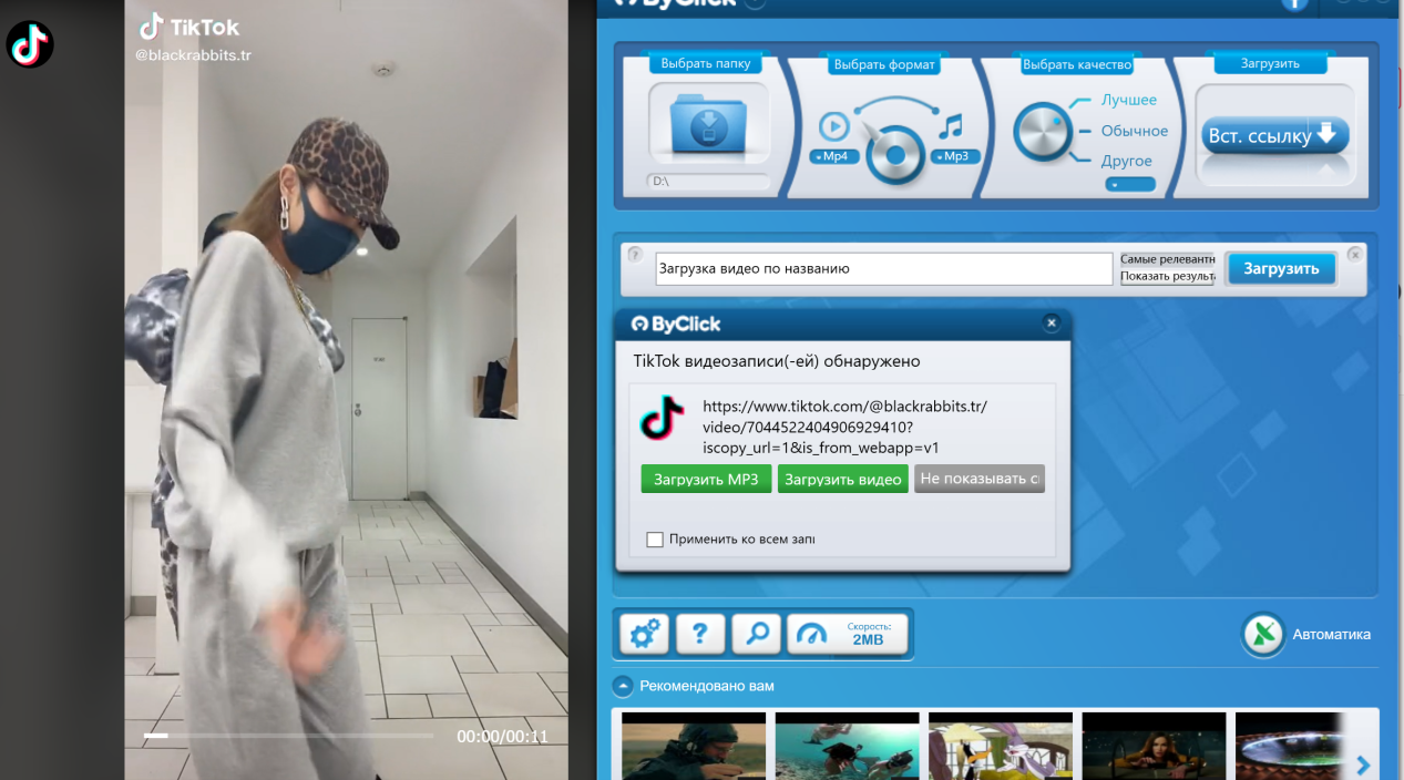 ByClick решит все задачи по скачиванию видео из популярных видеохостингов и социальных сетей. Приложение поддерживает более 40 вебсайтов, включая YouTube, Facebook, Twitter, Instagram, TikTok и многие другие.
