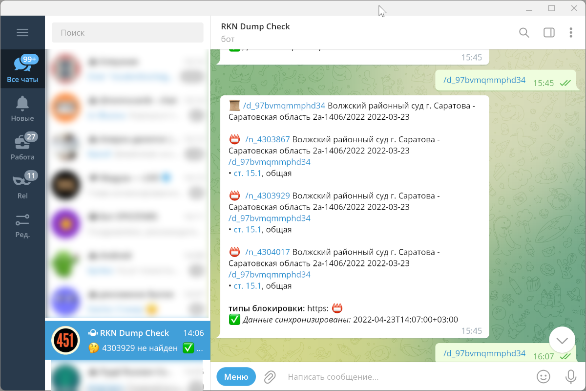 При отправке номера дела в @u2ckbot можно получить список остальных ресурсов, которые попали под горячую руку вместе с вами.