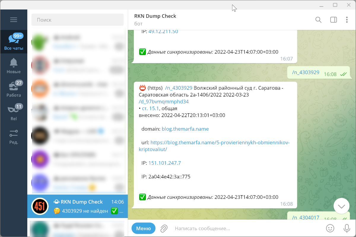 Именно в этом перечне можно найти ваш сайт и узнать конкретную страницу, которая значится в решении суда. Вместе с ней можно узнать, какой IP попал в блок и какого числа это произошло.