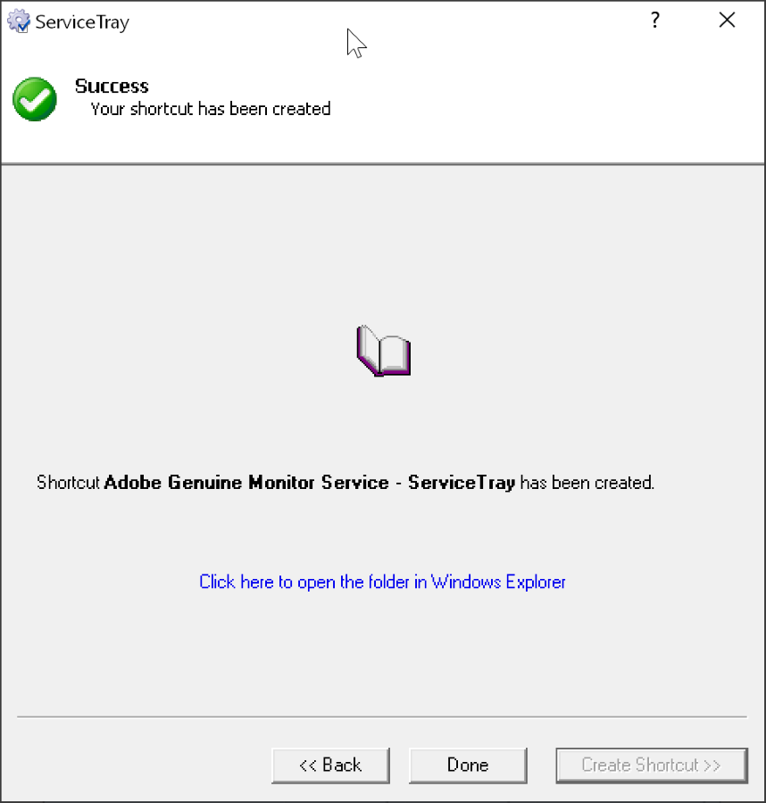 Итак, дело дошло непосредственно до создания ярлыка. Кликаем по Create shortcut (Создать ярлык) и ждём. Через несколько секунд ваш ярлык должен появиться в том месте, куда вы его отправили (либо на десктопе, либо в автозагрузке).