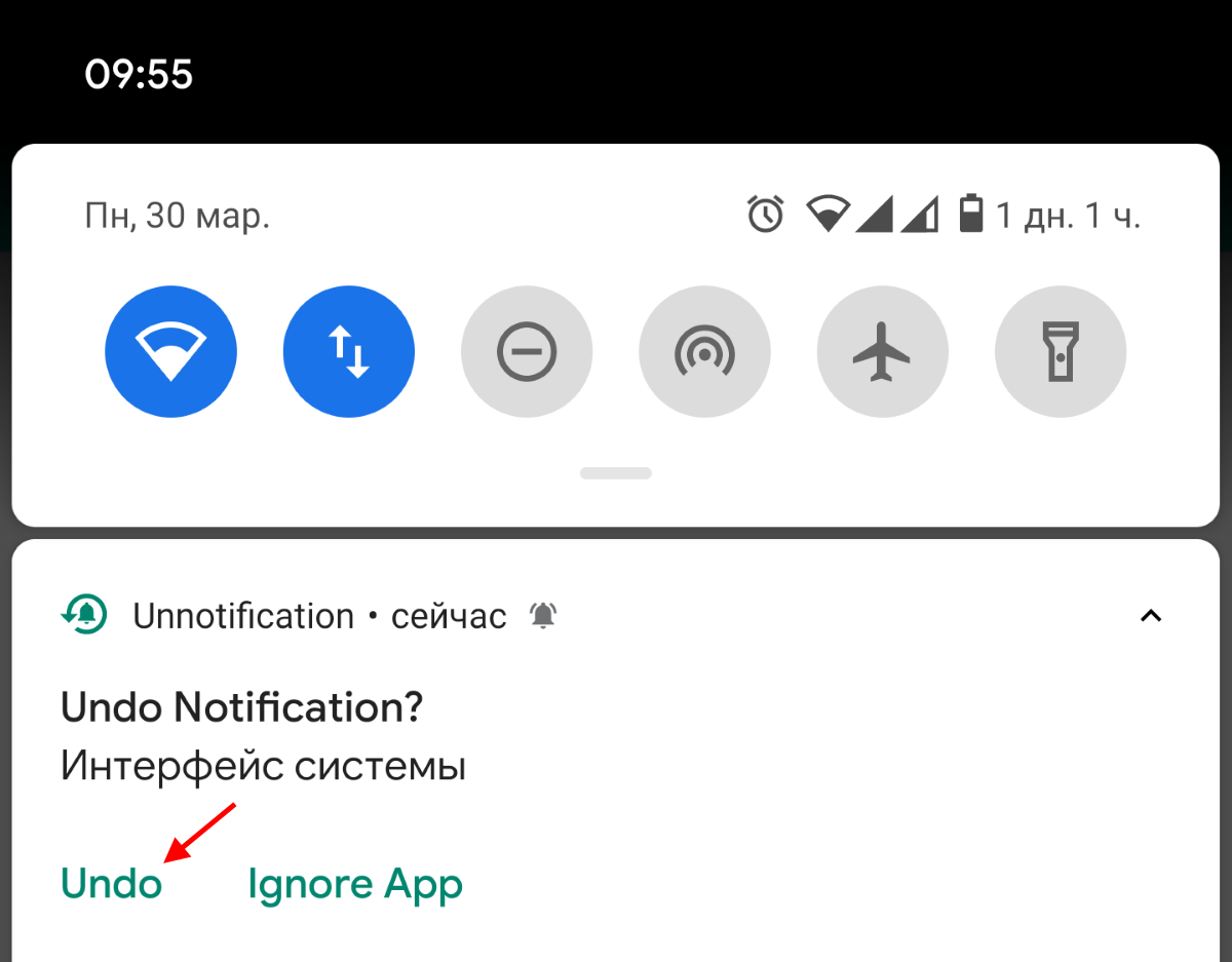 Для Android 8+ Unnotification добавляет возможность быстро вернуть случайно закрытое оповещение.