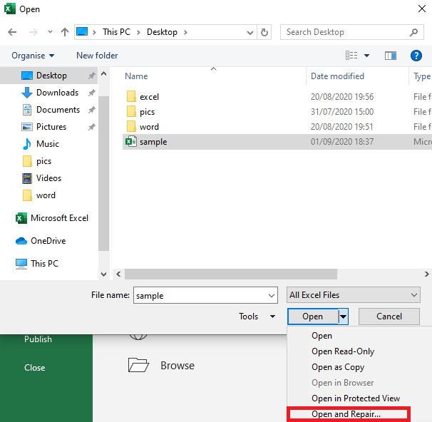 - Выберите файл в формате Excel, любой версии, даже Microsoft Excel 365;