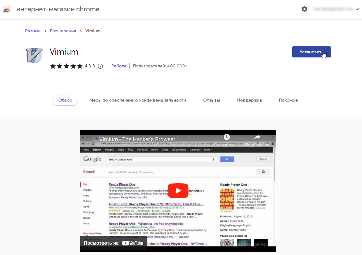 Установка Vimium довольно проста. Вы можете найти его в магазине расширений и установить в ваш браузер. После установки вы сможете сразу же начать пользоваться им.