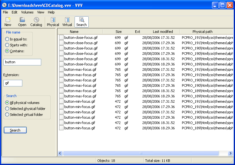 Virtual Volumes View (VVV) — это приложение для создания каталогов содержимого съёмных носителей, таких как CD- и DVD-диски, которое позволяет выполнять офлайн-поиск по файлам и папкам. Особенность VVV в том, что он объединяет файлы с разных носителей в единую виртуальную файловую систему, где папки можно организовать по логической структуре, что значительно упрощает доступ к данным.