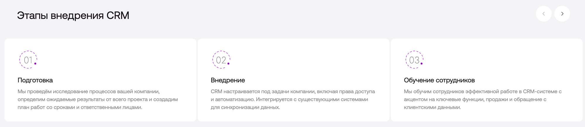 - Обучение сотрудников. Персонал проходит обучение, знакомится с функциональностью и получает поддержку на всех этапах.