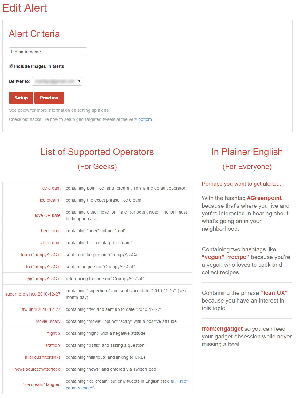 Для отслеживания упоминаний своего блока в Твиттер я использую Warble. Сервис бесплатный и присылает уведомления на почту, когда кто-то в Twitter упоминает слова, связанные с вашим сайтом.