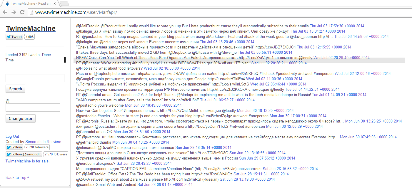 Сервис TwimeMachine помогает легко искать по своим записям в Twitter: