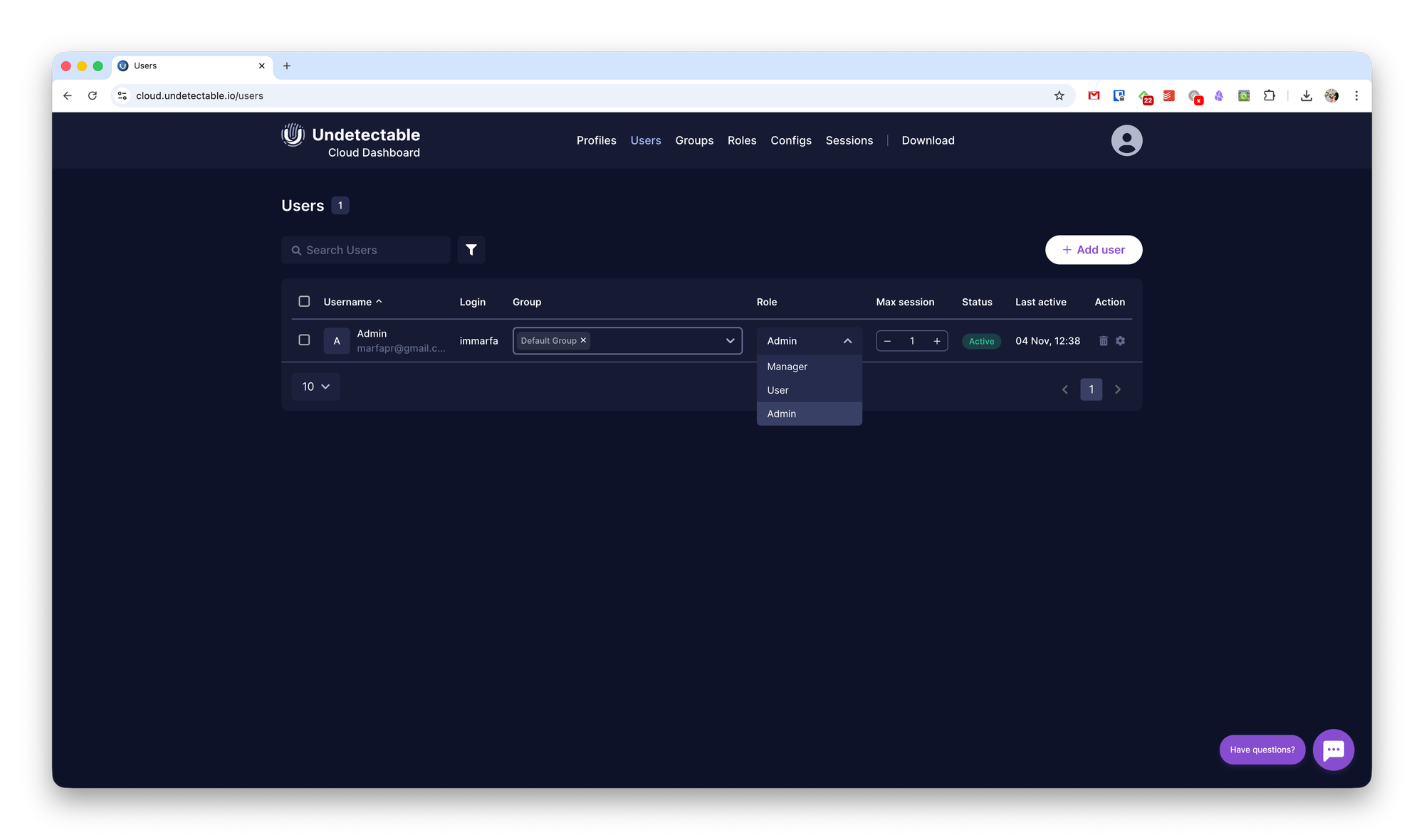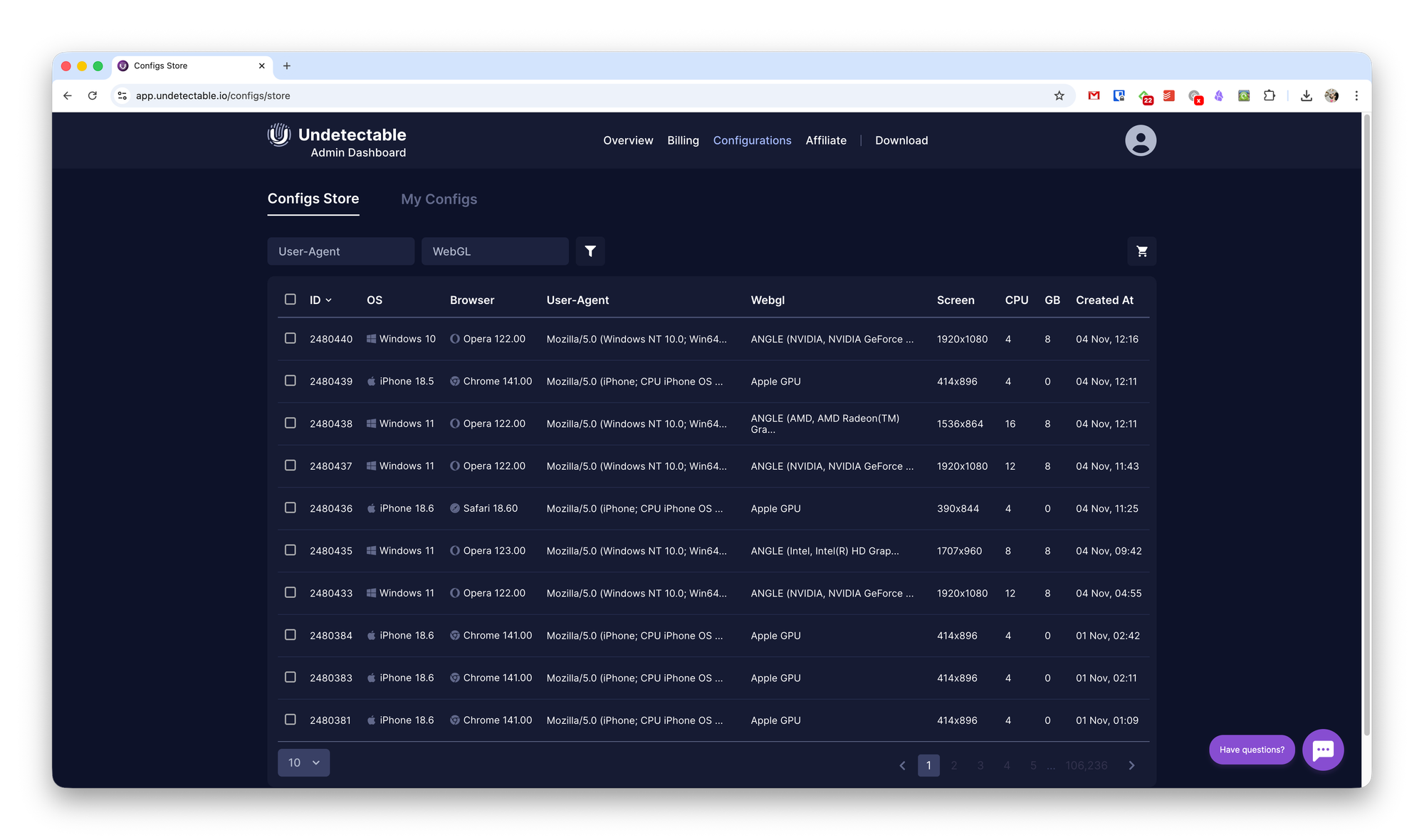 But no. In Undetectable’s admin panel, you can only browse the profile marketplace and view existing profiles. You can also manage users there, but for that you’ll need to log into a separate admin panel.