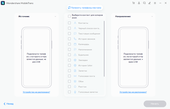 Передача данных с одного телефона на другой с помощью MobileTrans