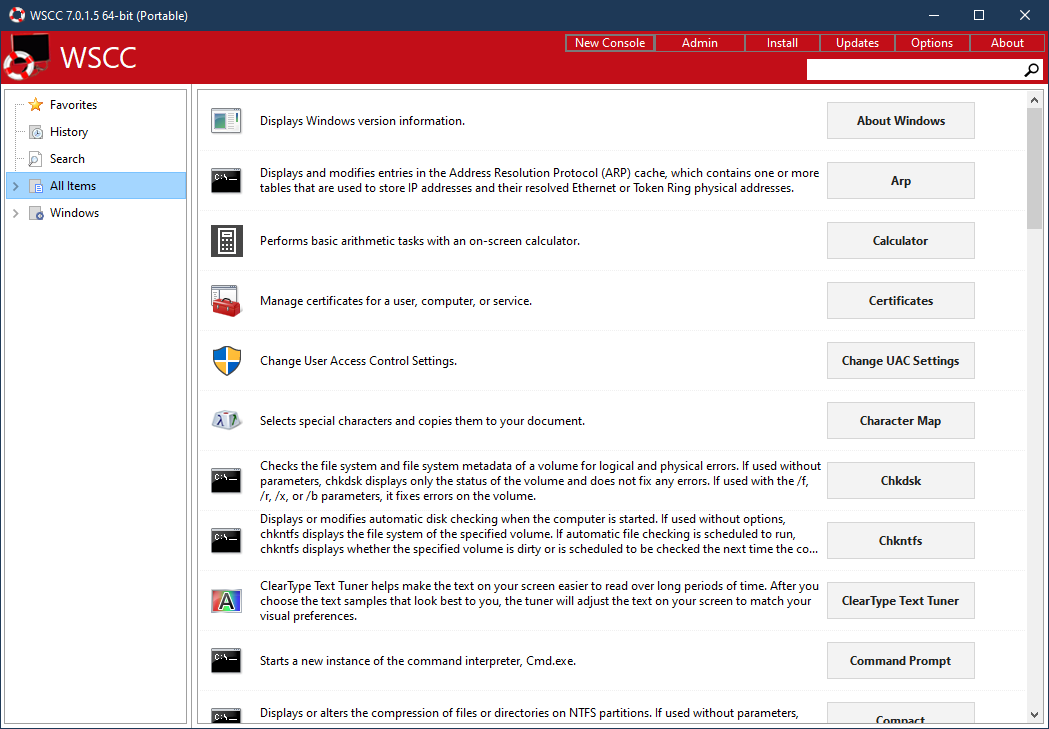 Центр контроля системы Windows — именно так расшифровывается название программного продукта. Он представляет собой программную оболочку и нужен для того, чтобы загружать утилиты от NirSoft и SysinternalsSuite. Эти утилиты применяют опытные пользователи, стремящиеся к расширению системных инструментов. Все программы могут быть как в 32-, так и 64-битных вариантах.